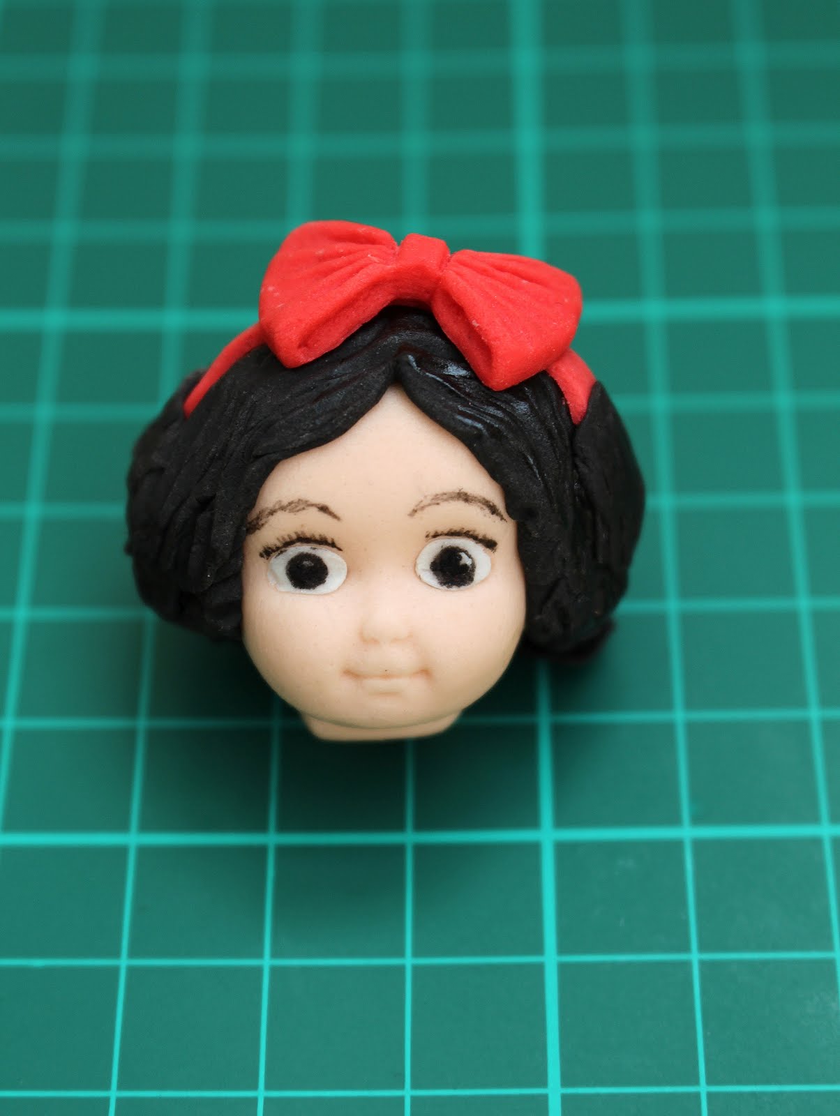 Here is a top shot of the head, you can see that the hair band doesn’t go right across the head. Also I added some food glaze to the hair to make it nice and shiny.